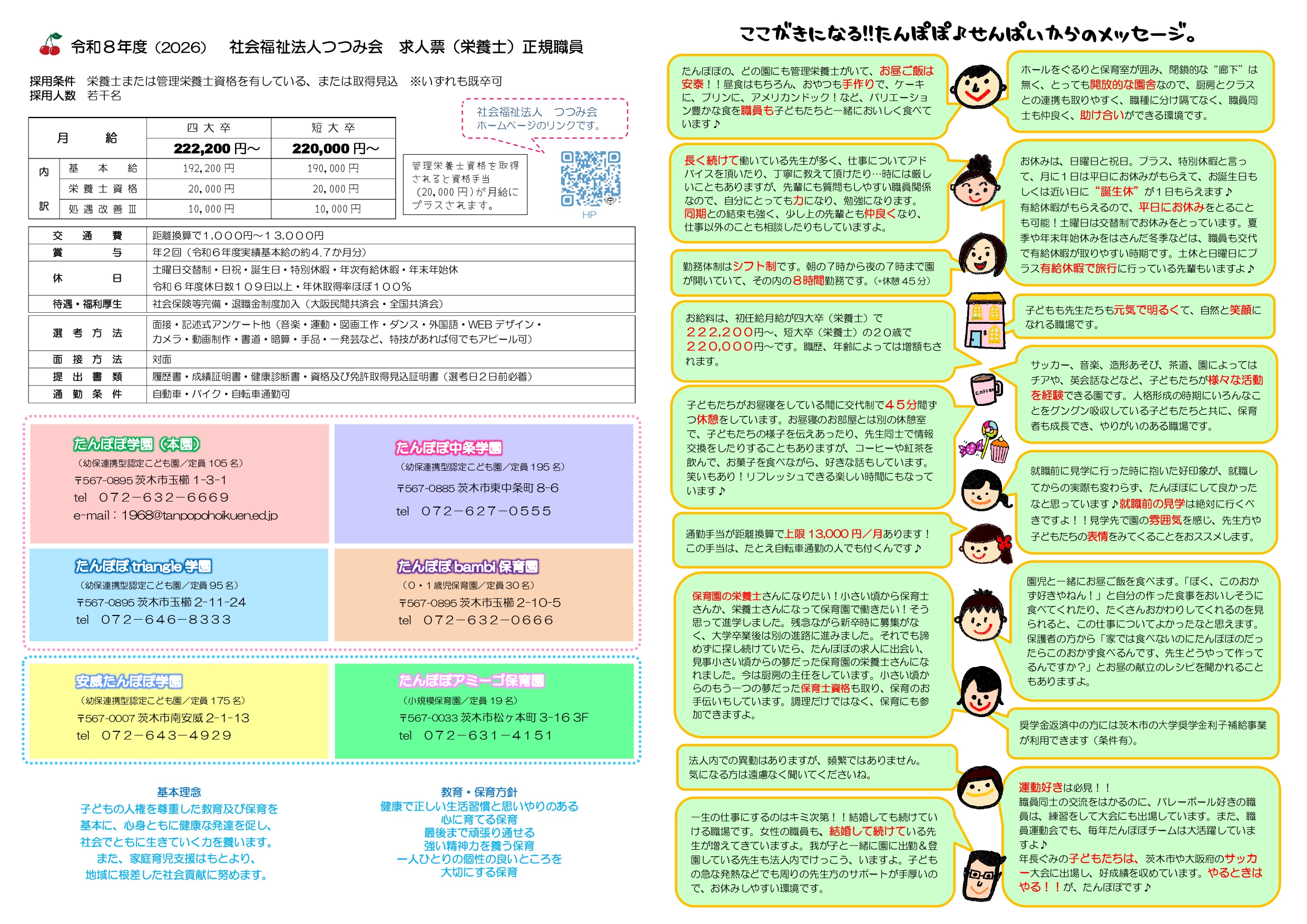 社会福祉法人つつみ会たんぽぽ学園求人票(栄養士)